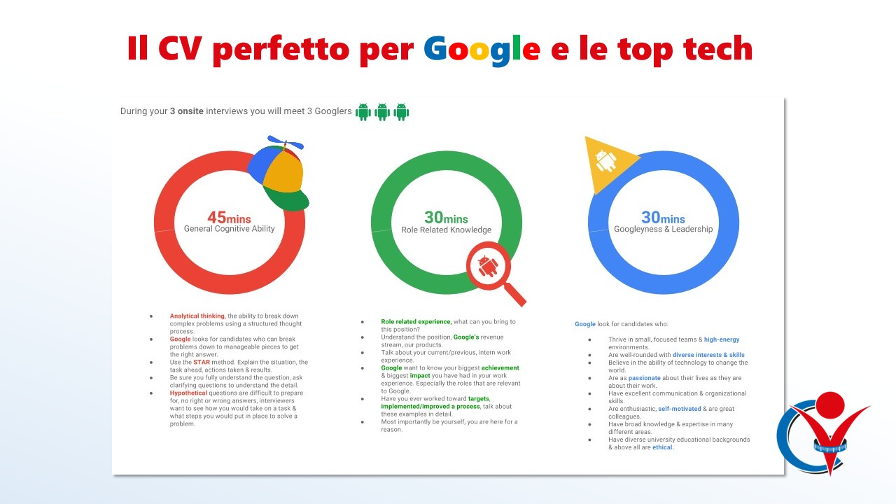 Sogni di lavorare per un colosso come Google? Se la risposta è sì, devi sapere che il tuo curriculum vitae non può essere semplicemente “buono”, deve essere impeccabile e, soprattutto, strutturato in un modo completamente diverso da quello tradizionale. Ecco quindi come realizzare un CV per Google ed altre big tech!