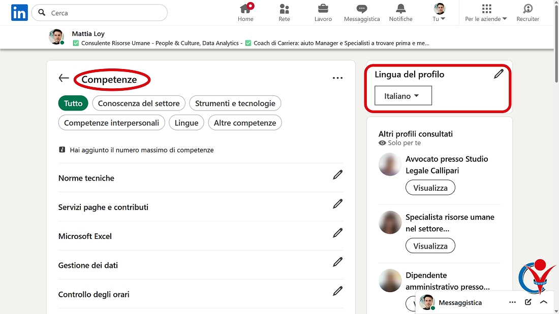 Come funziona il sistema di Competenze in un profilo LinkedIn multilingua